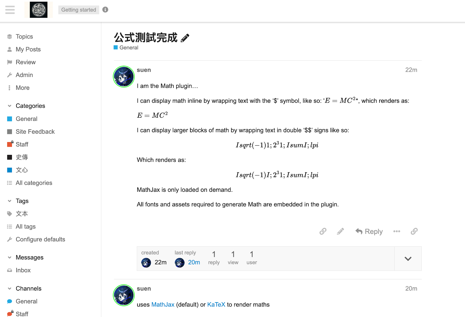 - sudo -E -u discourse git clone https://github.com/discourse/discourse-math.git