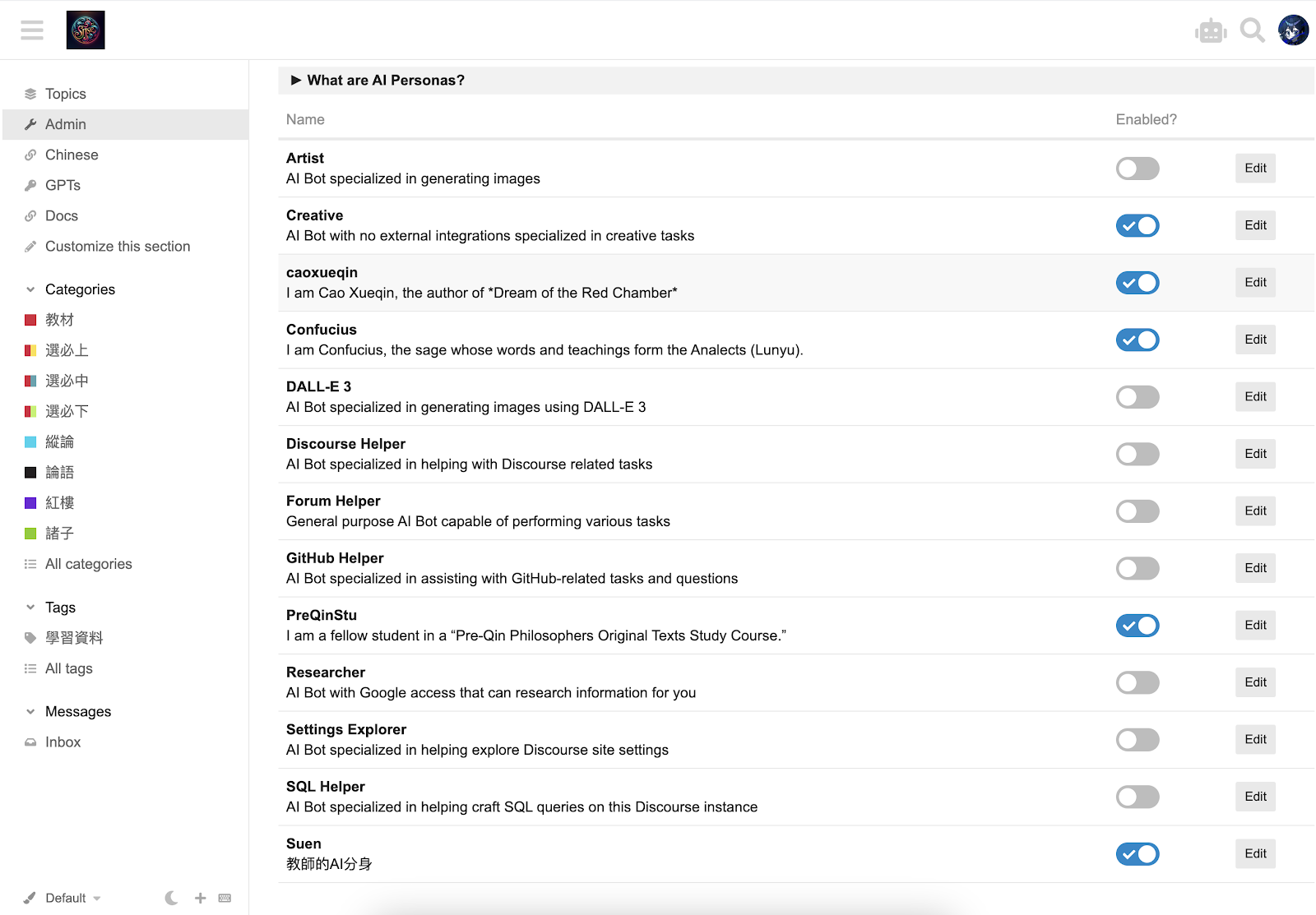 Creative作為系統默認AI,提示語雖然過於簡陋完全不能貼合課程,但用來日常聊天安撫學生,效果也蠻好,保留之。caoxueqin用來和學生聊紅樓夢, 實測效果 可用: NotReal PreQin_Class 1d