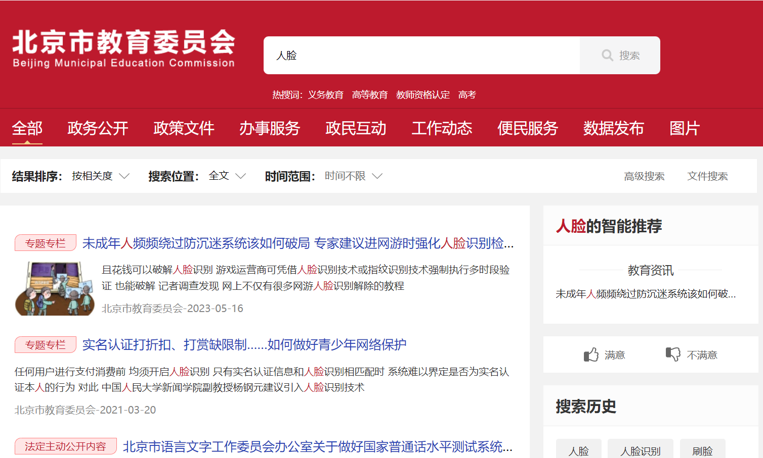 各地教委和教育部官網有明確的人臉管理規定嗎?北京市教委官網至少目前還沒。該不該制定?早該了,但指望他們?都忙著搞學分建設運動呢吧,讓大學生做前排,大學生不抬頭聽課都要叫家長陪讀了呢……都忙得不亦樂乎呢,哪裡有空管這些個人隱私的事情。