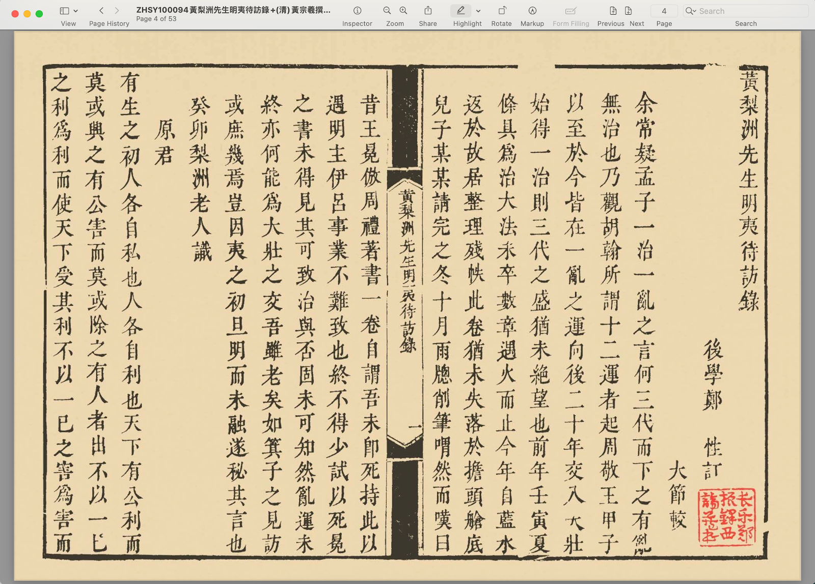 開學前,亂翻梨洲先生《明夷待訪錄》。