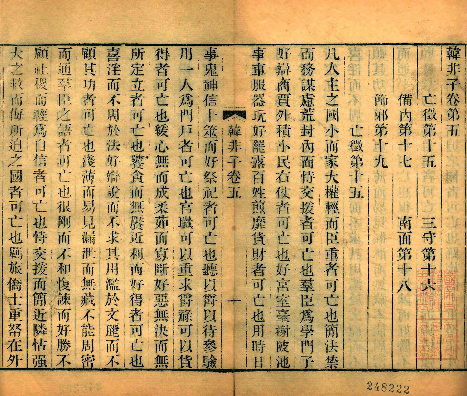 無教育而有裹腦,可亡也。無新聞而有黨媒,可亡也。無小民而有宏大,可亡也。無普世而有獨尊,可亡也。……亡徵者,非曰必亡,言其可亡也。夫兩堯不能相王,兩桀不能相亡,亡王之機,必其治亂、其強弱相踦者也。木之折也必通蠹,牆之壞也必通隙。然木雖蠹,無疾風不折;牆雖隙,無大雨不壞。萬乘之主,有能服術行法以為亡徵之君風雨者,其兼天下不難矣。