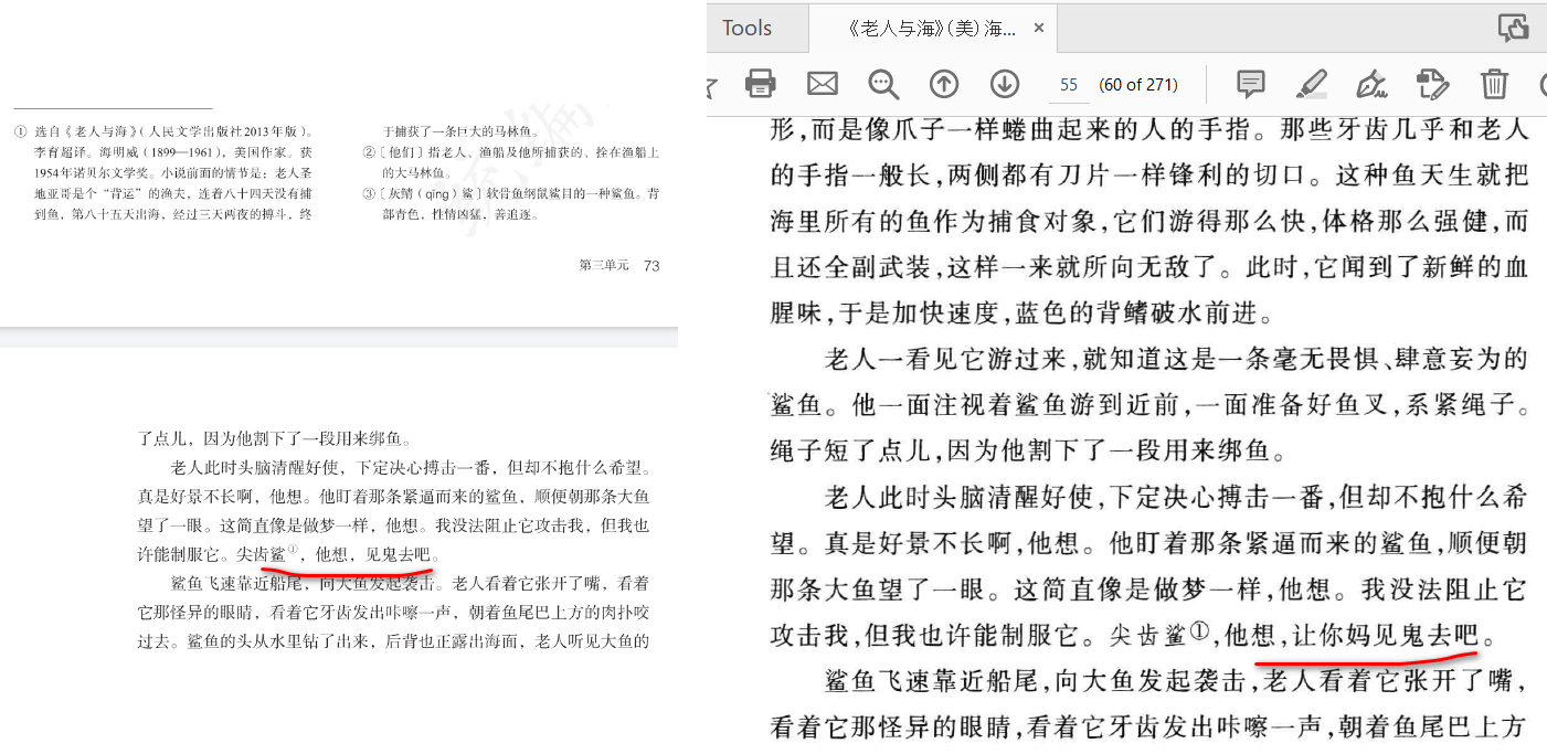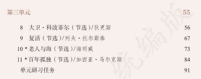 這裡的出問題與刪減,是基於教材課文所使用的漢譯作品,亦即課下註釋說本文节选自《……》(……出版社 ……年版)。……译。有改动。