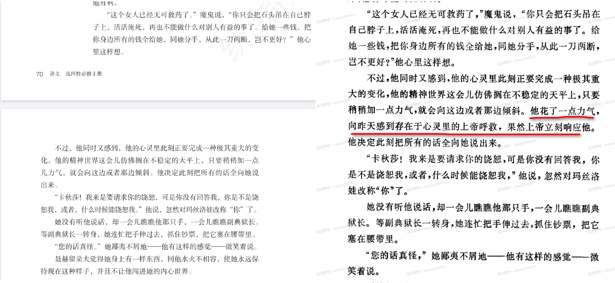 從上圖例子看,一部明顯帶有宗教救贖特質的小說,刪減後,得失幾何?