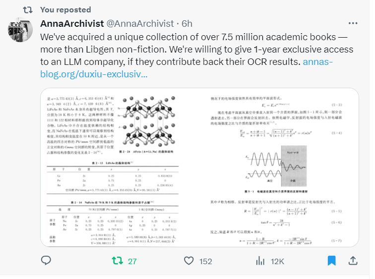 作為電子書這事的幾乎全程見證與參與者,園地和國學數典倒下很久了,這些數據此前其實也早已流布,但全面整理出來,還真就一直缺這個契機。靜等OPENAI拿到這些數據吧,下一輪開發者會上,也許,中文質量就有飛躍了。理想狀態中,如果不是我們自己的大局域網,OPENAI的創始時期,就應該可以協議獲取這些數據的……但Clash都能幾乎全系團滅的大戲,這幾日正在上演,開發者人間不值得的哀鳴淒厲婉轉,大國家重回文革的趨勢則呼之欲出,讀幾頁書亂寫幾個字外,還是大睡安眠,任萬千沉淪吧。