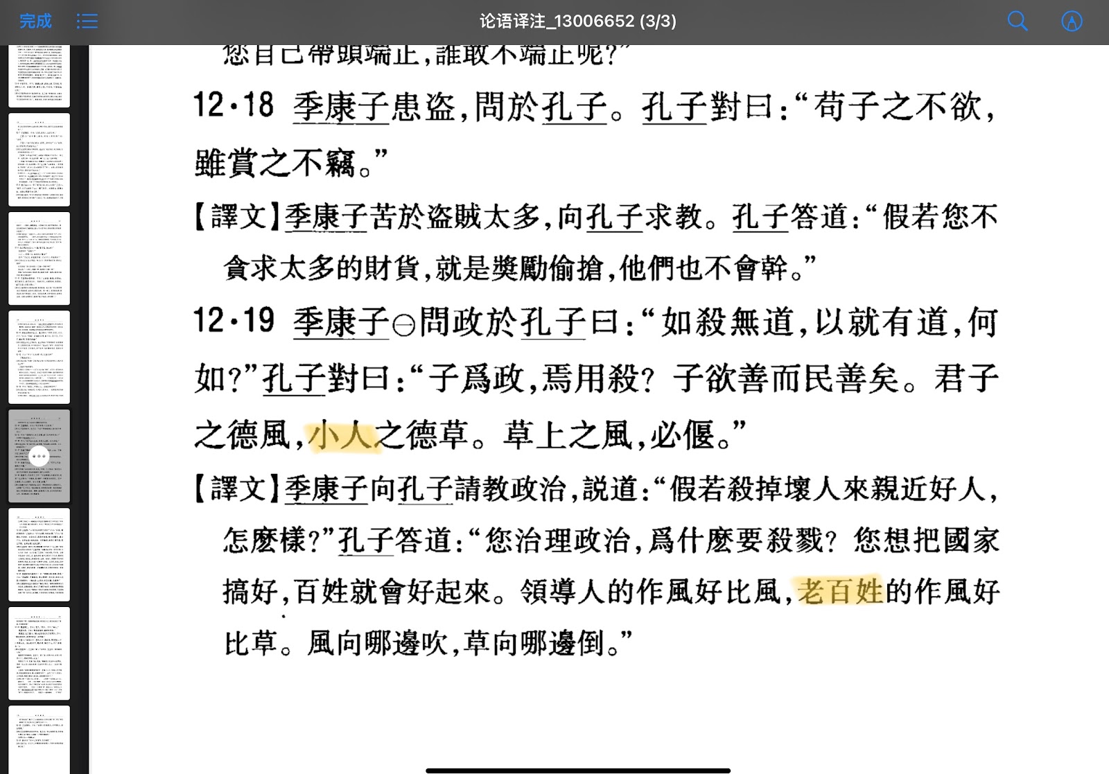 這個點,終究還是有人能看到:) https://ctext.org/analects/zh?searchu=%E5%B0%8F%E4%BA%BA
