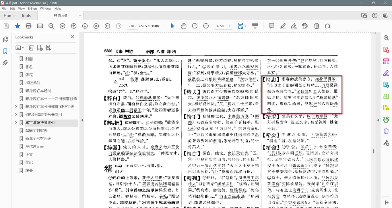 但以上兩者,都有一個大的缺失。辭書編纂以最早用例為準,並無不妥;但漢語詞彙的成型,因習慣駢散,多有先接近,再合併的情形。而”精“與”忠“,正是一個典範例子。