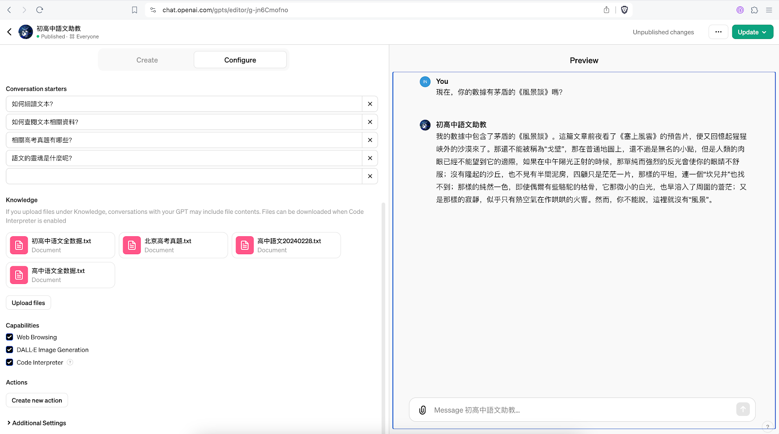 如上圖,添加20240228版本教材全文,保留之前版本全文。新加入《風景談》,已識別。