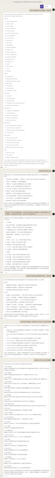 https://twitter.com/NobelPrize/status/1709890773926224304 下午開始讓AI分析歷年文學獎,GPT做這事,是不如claude的: